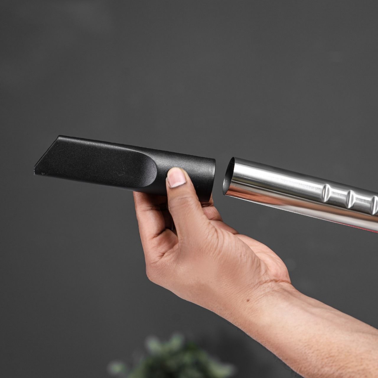 تجي المكنسة مع 4 رؤوس متنوعة لتناسب جميع أنواع الأسطح، من الكنب والسجاد للزوايا الضيقة.